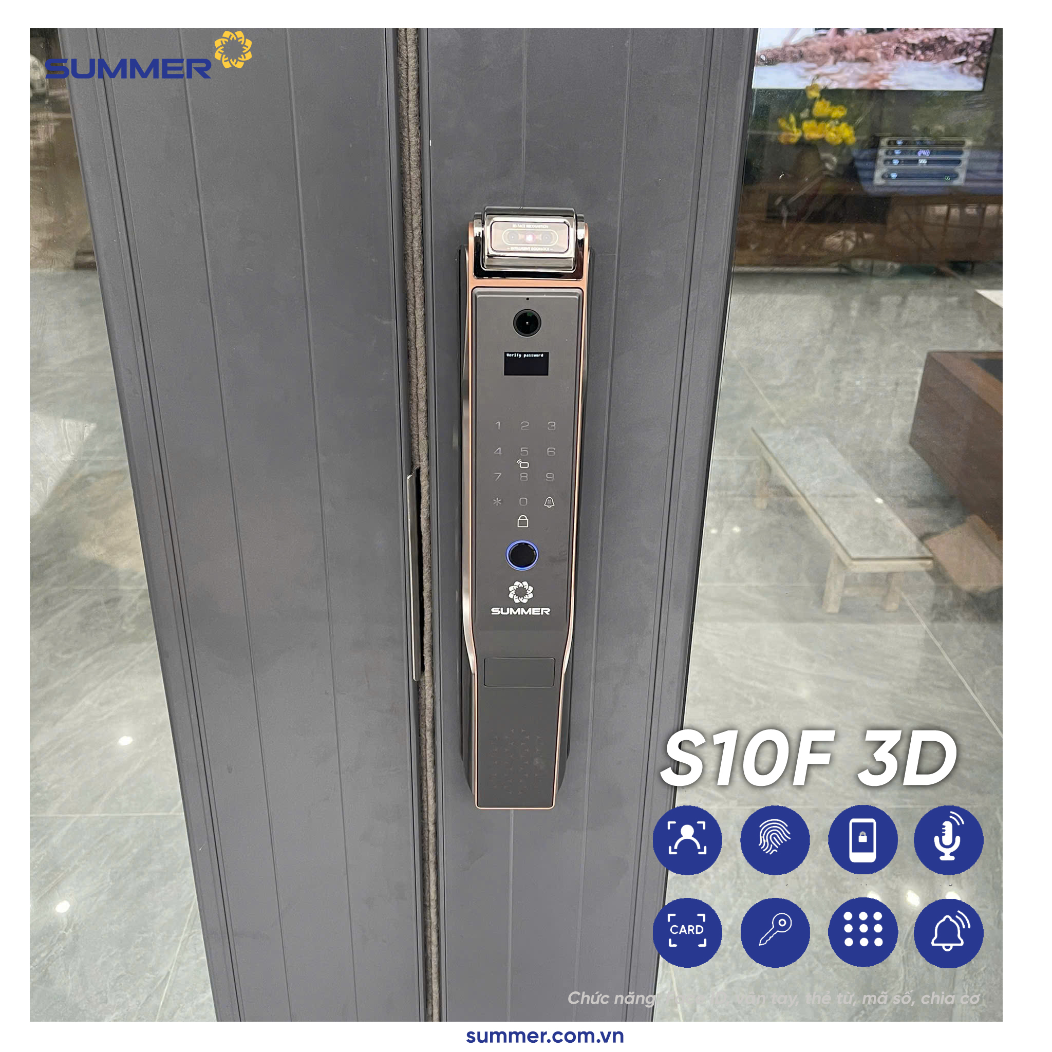 Khóa cửa thông minh là sản phẩm hiện đại thế hệ mới cửa khóa cửa Summer. Với tính năng ưu việt, bạn có thể dễ dàng mở cửa bằng vân tay, mật mã, thẻ từ, chìa khóa cơ và app điện thoại điều khiển từ xa.